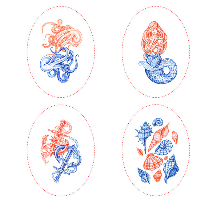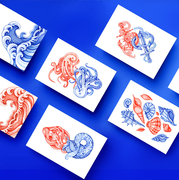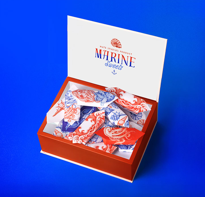 這條由伴侶工作室設計的糖果制作精美,在一個干凈的白色表面上使用華麗的紅色和藍色的插圖。圖紙是復雜的,優雅的手繪線的組合收斂。美麗的海上圖案被翻譯在外包裝上,并在個別包裝上,每一個甜蜜的折疊在一個豐富多彩的封面。
